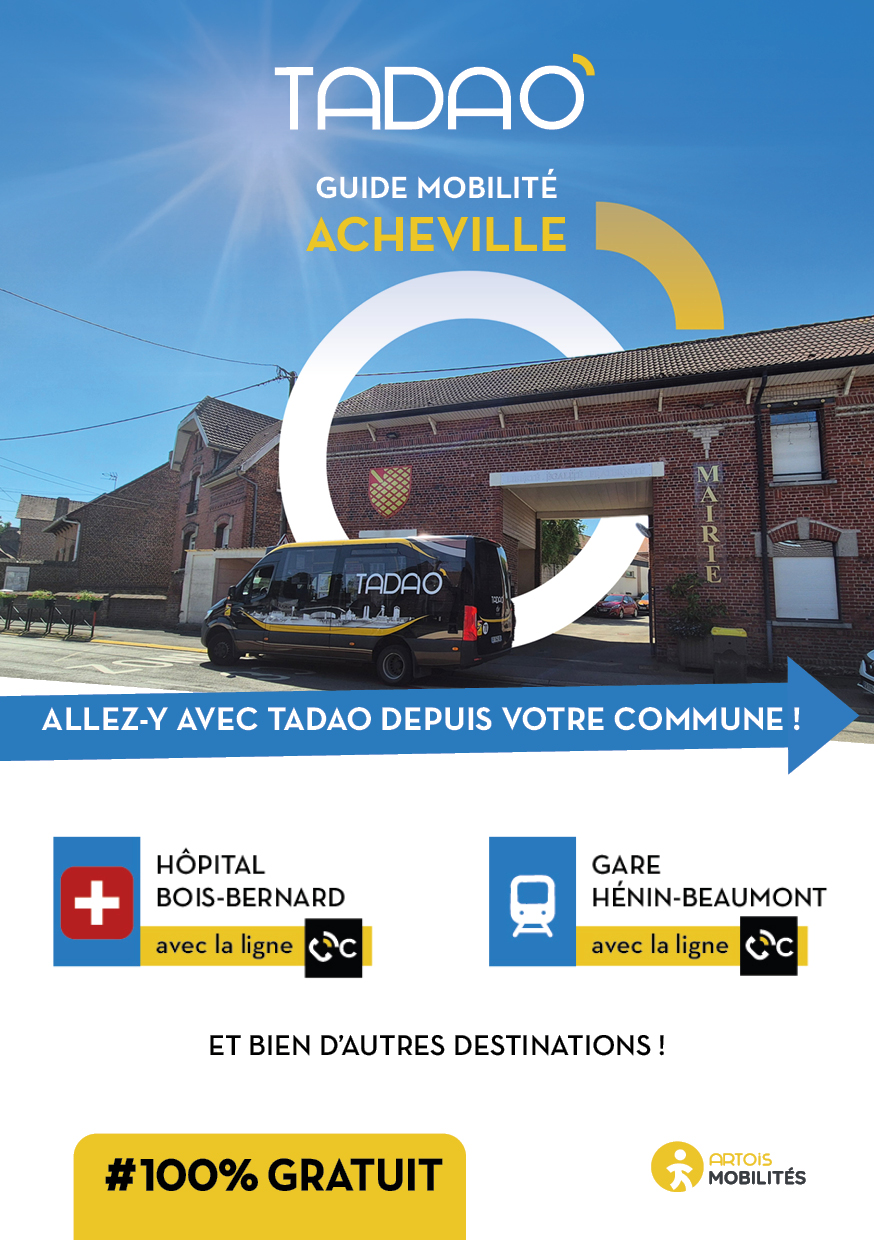 ACHEVILLE Les services TADAO sur la commune Télécharger le GUIDE de votre commune au format PDF Télécharger le GUIDE au format ZIP avec les JPEG Téléchargements Envoyer cette page par email : Votre demande a bien été prise en compte et sera traitée dès que possible Votre nom* Votre adresse email* Adresse du destinataire* Commentaire https://www.artois-mobilites.fr/acheville/ Code de vérification* Envoyer *champs obligatoires