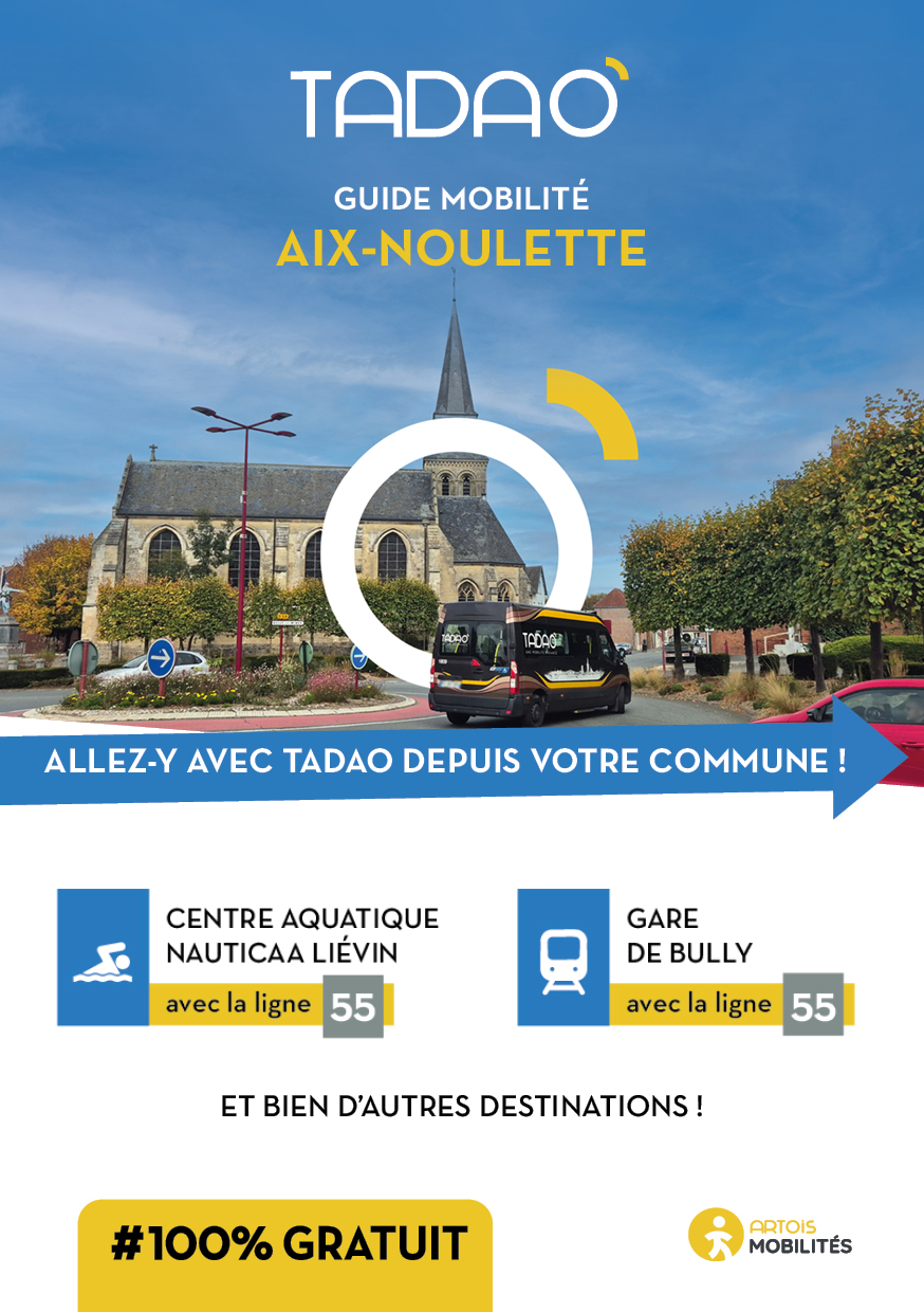 AIX-NOULETTE Les services TADAO sur la commune Télécharger le GUIDE de votre commune au format PDF Télécharger le GUIDE au format ZIP avec les JPEG Téléchargements Envoyer cette page par email : Votre demande a bien été prise en compte et sera traitée dès que possible Votre nom* Votre adresse email* Adresse du destinataire* Commentaire https://www.artois-mobilites.fr/aix-noulette/ Code de vérification* Envoyer *champs obligatoires