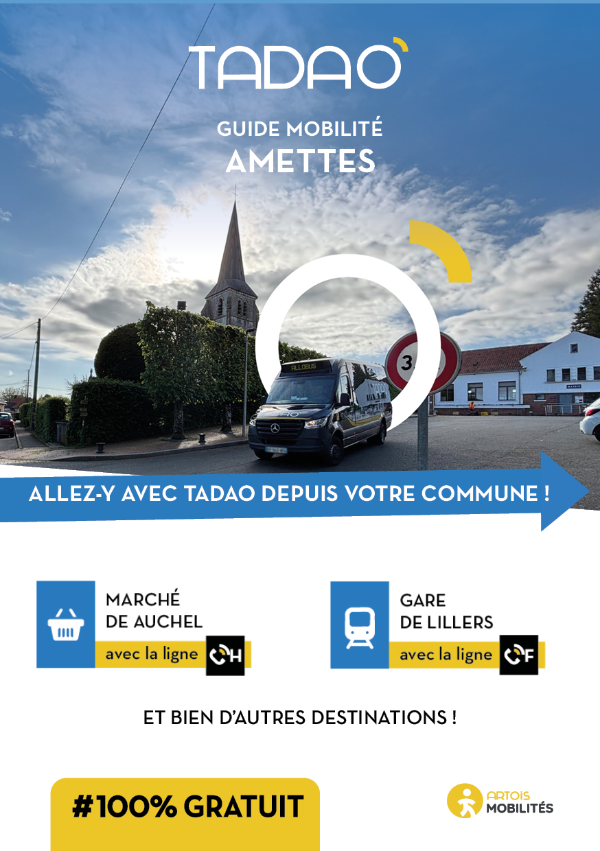 AMETTES Les services TADAO sur la commune Télécharger le GUIDE de votre commune au format PDF Télécharger le GUIDE au format ZIP avec les JPEG Téléchargements Envoyer cette page par email : Votre demande a bien été prise en compte et sera traitée dès que possible Votre nom* Votre adresse email* Adresse du destinataire* Commentaire https://www.artois-mobilites.fr/amettes/ Code de vérification* Envoyer *champs obligatoires