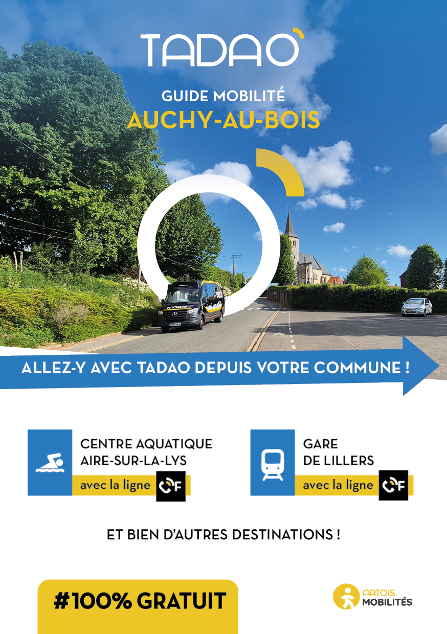AUCHY-AU-BOIS Les services TADAO sur la commune Télécharger le GUIDE de votre commune au format PDF Télécharger le GUIDE au format ZIP avec les JPEG Téléchargements Envoyer cette page par email : Votre demande a bien été prise en compte et sera traitée dès que possible Votre nom* Votre adresse email* Adresse du destinataire* Commentaire https://www.artois-mobilites.fr/auchy-au-bois/ Code de vérification* Envoyer *champs obligatoires