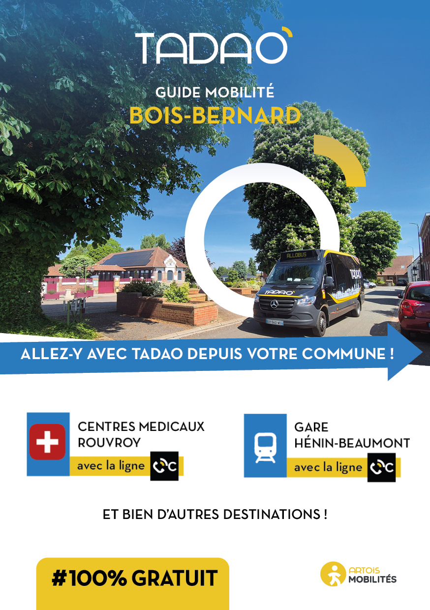 BOIS-BERNARD Les services TADAO sur la commune Télécharger le GUIDE de votre commune au format PDF Télécharger le GUIDE au format ZIP avec les JPEG Téléchargements Envoyer cette page par email : Votre demande a bien été prise en compte et sera traitée dès que possible Votre nom* Votre adresse email* Adresse du destinataire* Commentaire https://www.artois-mobilites.fr/bois-bernard/ Code de vérification* Envoyer *champs obligatoires
