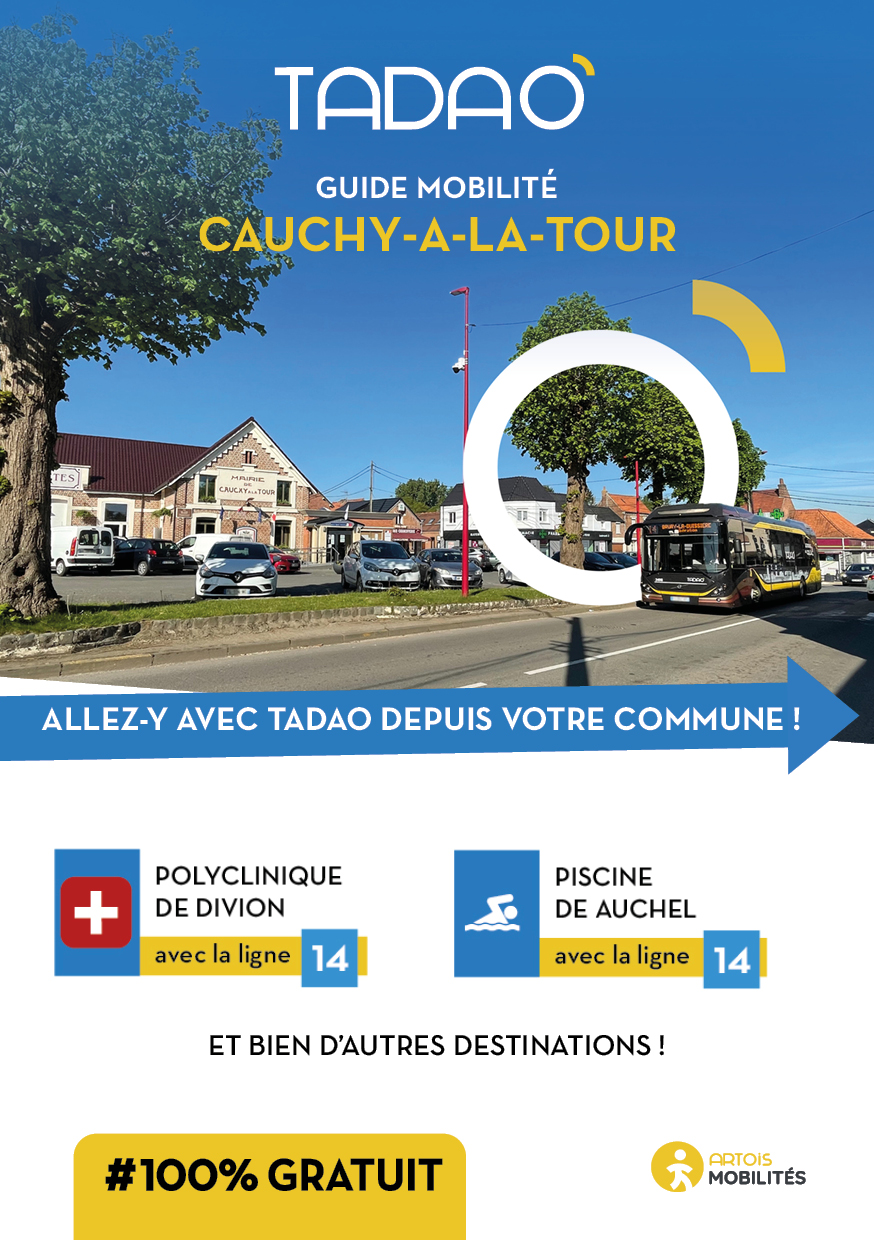 CAUCHY-A-LA-TOUR Les services TADAO sur la commune Télécharger le GUIDE de votre commune au format PDF Télécharger le GUIDE au format ZIP avec les JPEG Téléchargements Envoyer cette page par email : Votre demande a bien été prise en compte et sera traitée dès que possible Votre nom* Votre adresse email* Adresse du destinataire* Commentaire https://www.artois-mobilites.fr/cauchy-a-la-tour/ Code de vérification* Envoyer *champs obligatoires
