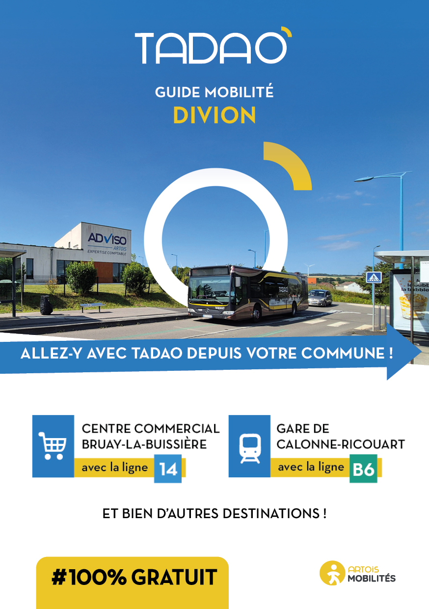 DIVION Les services TADAO sur la commune Télécharger le GUIDE de votre commune au format PDF Télécharger le GUIDE au format ZIP avec les JPEG Téléchargements Envoyer cette page par email : Votre demande a bien été prise en compte et sera traitée dès que possible Votre nom* Votre adresse email* Adresse du destinataire* Commentaire https://www.artois-mobilites.fr/divion/ Code de vérification* Envoyer *champs obligatoires