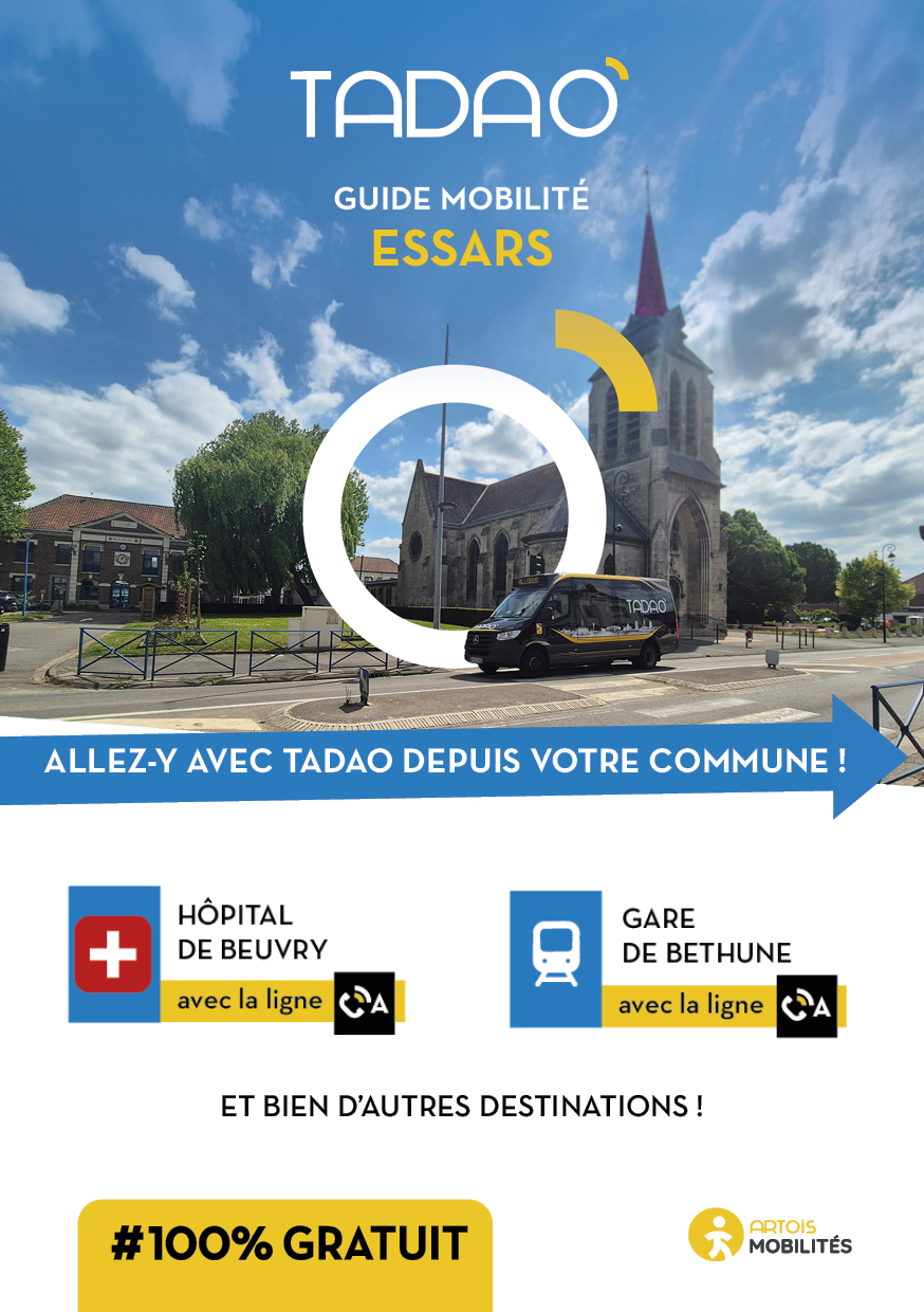ESSARS Les services TADAO sur la commune Télécharger le GUIDE de votre commune au format PDF Télécharger le GUIDE au format ZIP avec les JPEG Téléchargements Envoyer cette page par email : Votre demande a bien été prise en compte et sera traitée dès que possible Votre nom* Votre adresse email* Adresse du destinataire* Commentaire https://www.artois-mobilites.fr/essars/ Code de vérification* Envoyer *champs obligatoires