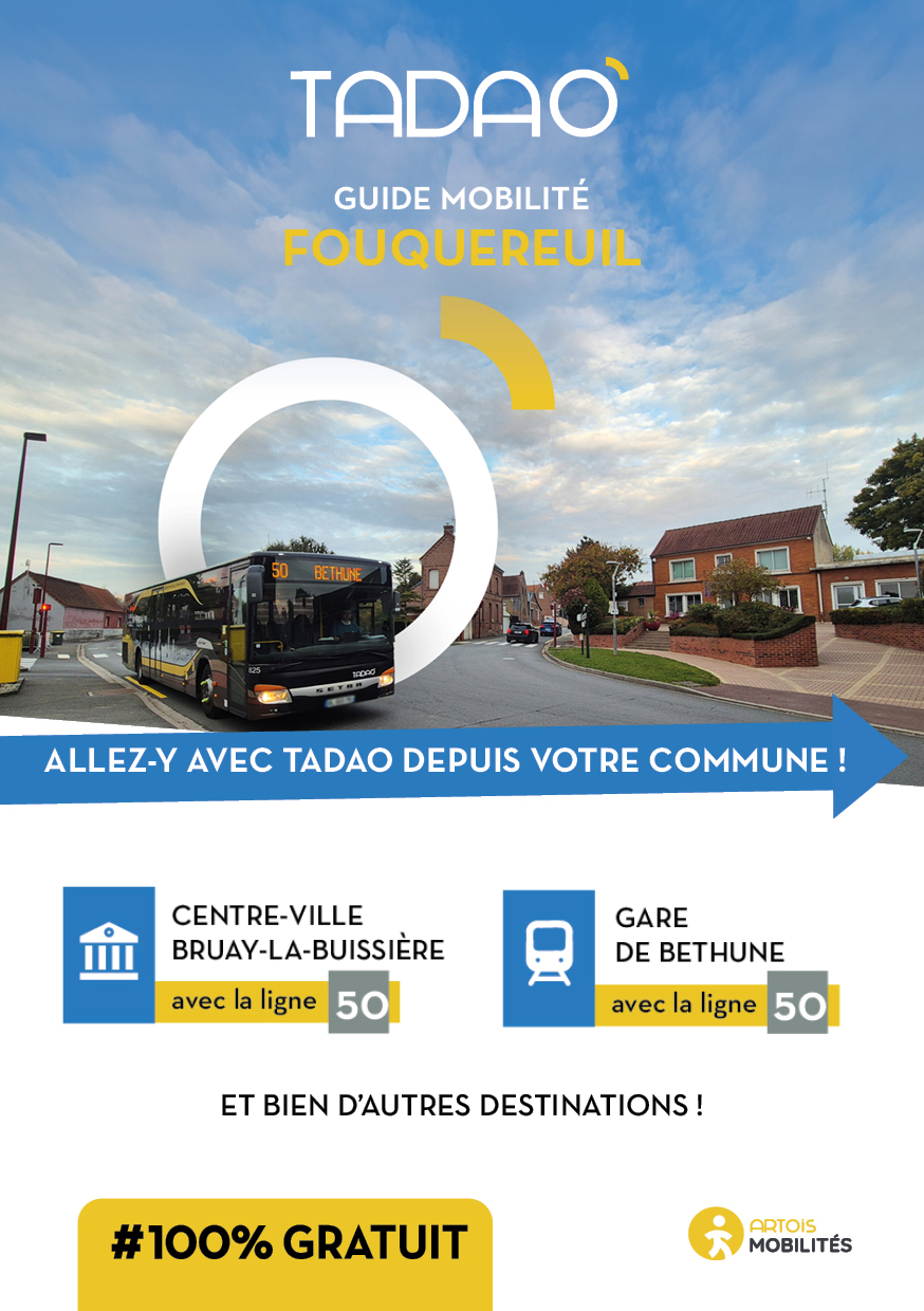 FOUQUEREUIL Les services TADAO sur la commune Télécharger le GUIDE de votre commune au format PDF Télécharger le GUIDE au format ZIP avec les JPEG Téléchargements Envoyer cette page par email : Votre demande a bien été prise en compte et sera traitée dès que possible Votre nom* Votre adresse email* Adresse du destinataire* Commentaire https://www.artois-mobilites.fr/fouquereuil/ Code de vérification* Envoyer *champs obligatoires