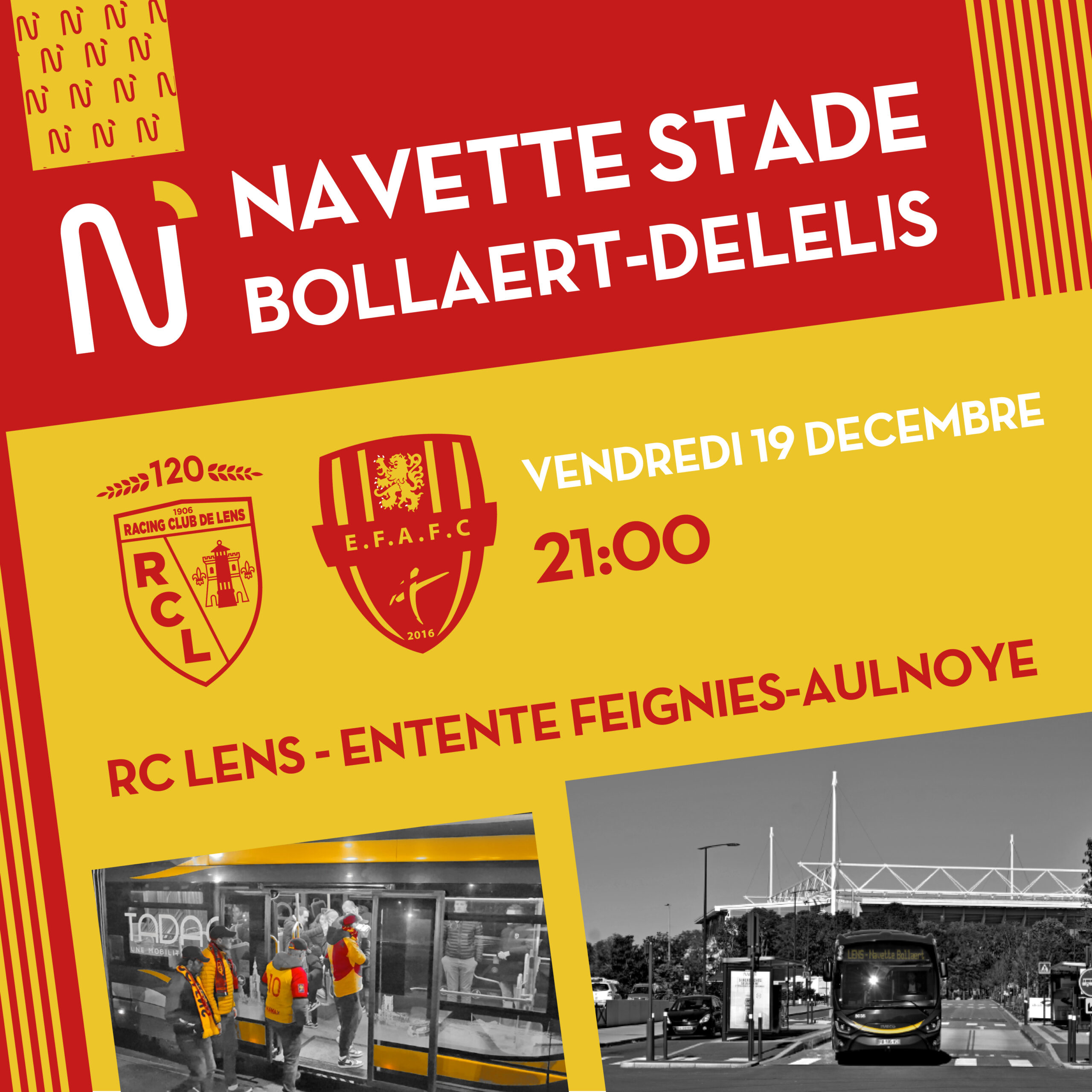 Vous venez encourager les Sang et Or ? Gagnez du temps, évitez le stress et profitez pleinement de l’ambiance grâce à la navette Bollaert-Delelis !