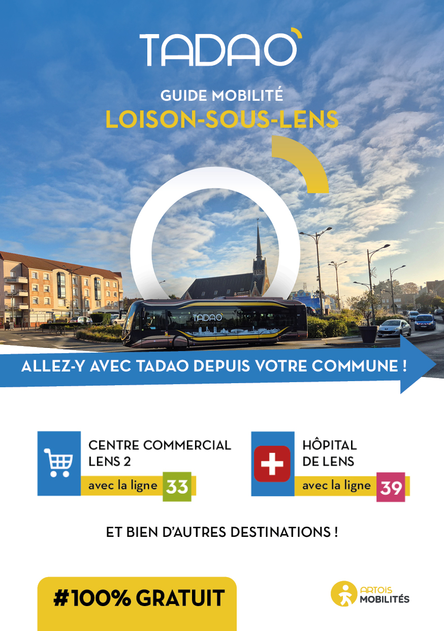 LOISON-SOUS-LENS Les services TADAO sur la commune Télécharger le GUIDE de votre commune au format PDF Télécharger le GUIDE au format ZIP avec les JPEG Téléchargements Envoyer cette page par email : Votre demande a bien été prise en compte et sera traitée dès que possible Votre nom* Votre adresse email* Adresse du destinataire* Commentaire https://www.artois-mobilites.fr/loison-sous-lens/ Code de vérification* Envoyer *champs obligatoires