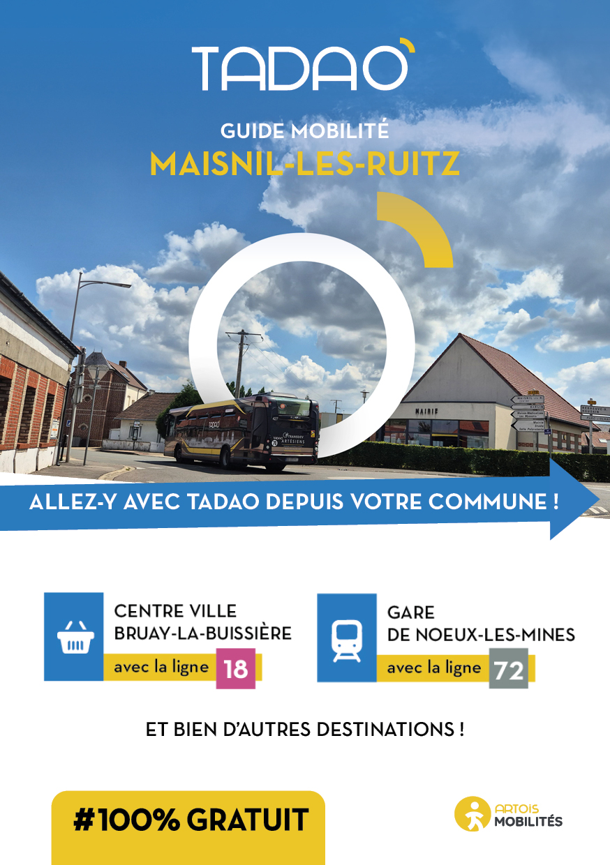MAISNIL-LES-RUITZ Les services TADAO sur la commune Télécharger le GUIDE de votre commune au format PDF Télécharger le GUIDE au format ZIP avec les JPEG Téléchargements Envoyer cette page par email : Votre demande a bien été prise en compte et sera traitée dès que possible Votre nom* Votre adresse email* Adresse du destinataire* Commentaire https://www.artois-mobilites.fr/maisnil-les-ruitz/ Code de vérification* Envoyer *champs obligatoires