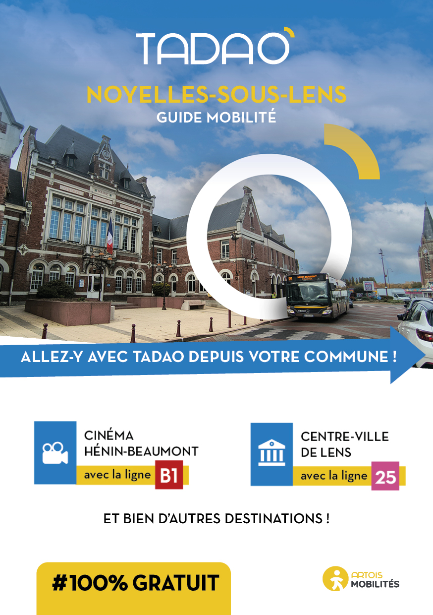 NOYELLES-SOUS-LENS Les services TADAO sur la commune Télécharger le GUIDE de votre commune au format PDF Télécharger le GUIDE au format ZIP avec les JPEG Téléchargements Envoyer cette page par email : Votre demande a bien été prise en compte et sera traitée dès que possible Votre nom* Votre adresse email* Adresse du destinataire* Commentaire https://www.artois-mobilites.fr/noyelles-sous-lens/ Code de vérification* Envoyer *champs obligatoires