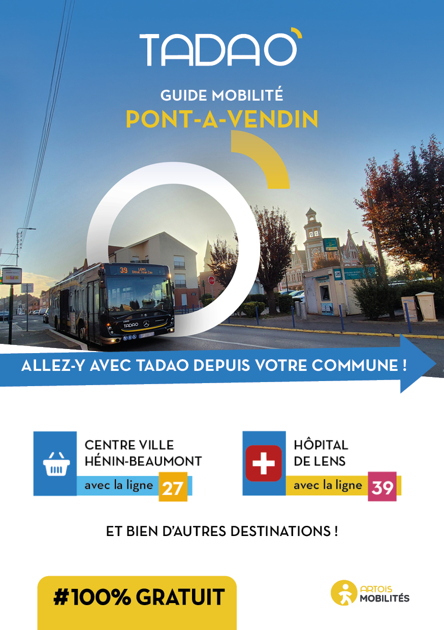 PONT-A-VENDIN Les services TADAO sur la commune Télécharger le GUIDE de votre commune au format PDF Télécharger le GUIDE au format ZIP avec les JPEG Téléchargements Envoyer cette page par email : Votre demande a bien été prise en compte et sera traitée dès que possible Votre nom* Votre adresse email* Adresse du destinataire* Commentaire https://www.artois-mobilites.fr/pont-a-vendin/ Code de vérification* Envoyer *champs obligatoires
