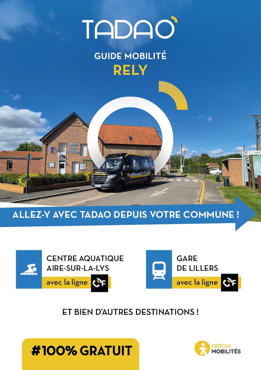 RELY Les services TADAO sur la commune Télécharger le GUIDE de votre commune au format PDF Télécharger le GUIDE au format ZIP avec les JPEG Téléchargements Envoyer cette page par email : Votre demande a bien été prise en compte et sera traitée dès que possible Votre nom* Votre adresse email* Adresse du destinataire* Commentaire https://www.artois-mobilites.fr/rely/ Code de vérification* Envoyer *champs obligatoires