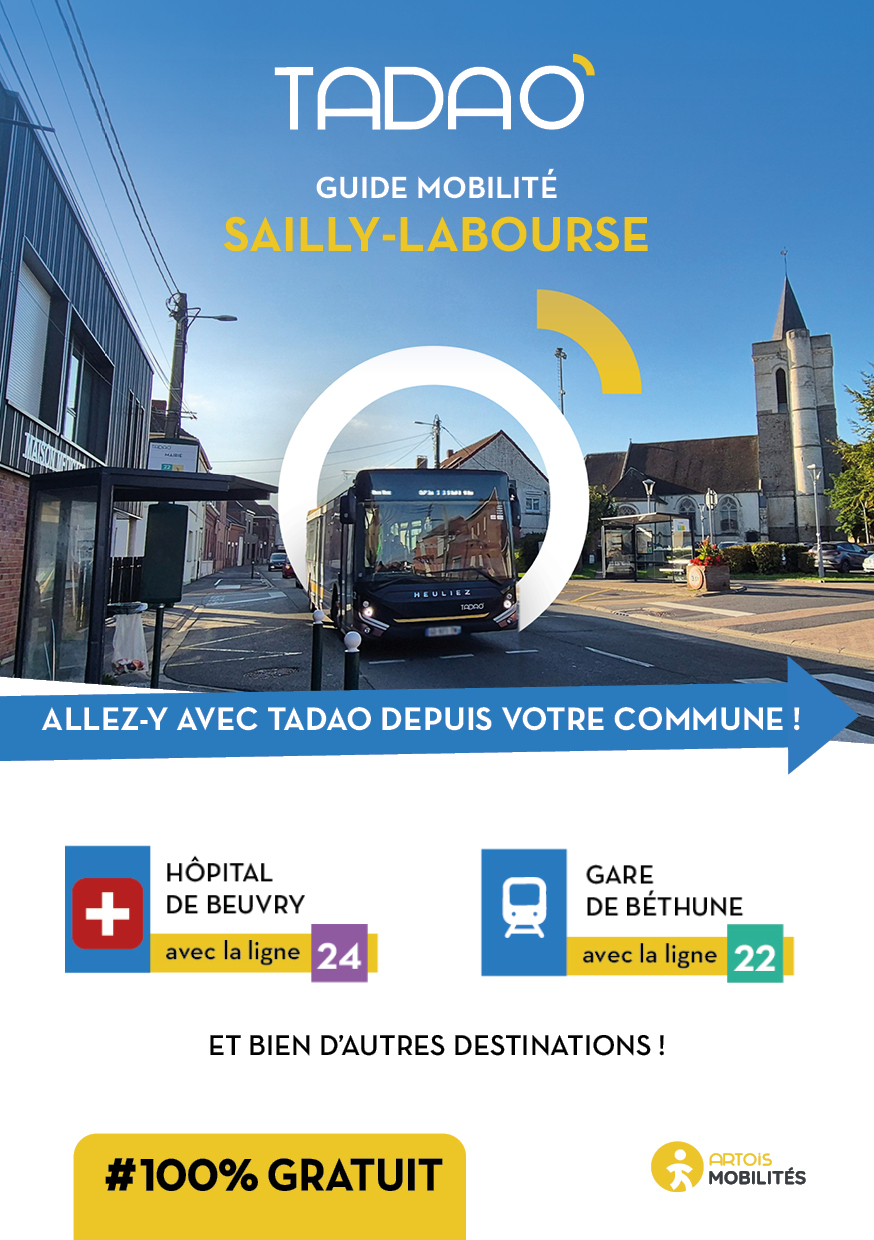 SAILLY-LABOURSE Les services TADAO sur la commune Télécharger le GUIDE de votre commune au format PDF Télécharger le GUIDE au format ZIP avec les JPEG Téléchargements Envoyer cette page par email : Votre demande a bien été prise en compte et sera traitée dès que possible Votre nom* Votre adresse email* Adresse du destinataire* Commentaire https://www.artois-mobilites.fr/sailly-labourse/ Code de vérification* Envoyer *champs obligatoires