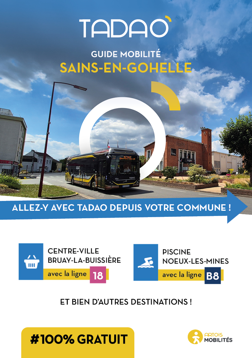 SAINS-EN-GOHELLE Les services TADAO sur la commune Télécharger le GUIDE de votre commune au format PDF Télécharger le GUIDE au format ZIP avec les JPEG Téléchargements Envoyer cette page par email : Votre demande a bien été prise en compte et sera traitée dès que possible Votre nom* Votre adresse email* Adresse du destinataire* Commentaire https://www.artois-mobilites.fr/sains-en-gohelle/ Code de vérification* Envoyer *champs obligatoires