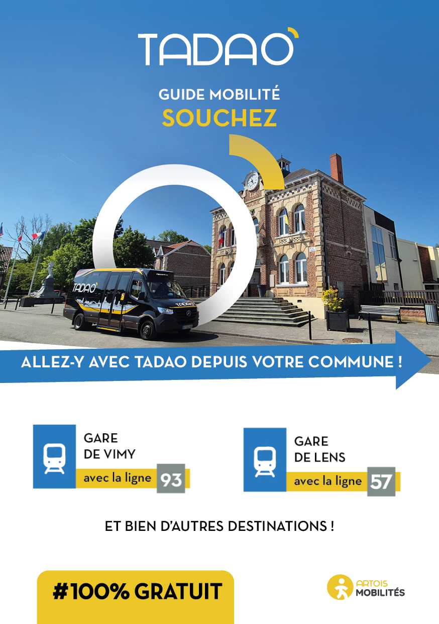 SOUCHEZ Les services TADAO sur la commune Télécharger le GUIDE de votre commune au format PDF Télécharger le GUIDE au format ZIP avec les JPEG Téléchargements Envoyer cette page par email : Votre demande a bien été prise en compte et sera traitée dès que possible Votre nom* Votre adresse email* Adresse du destinataire* Commentaire https://www.artois-mobilites.fr/souchez/ Code de vérification* Envoyer *champs obligatoires