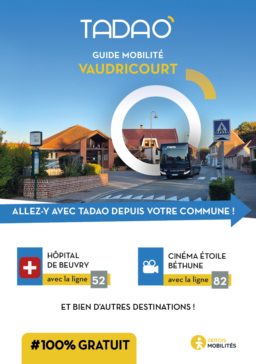 VAUDRICOURT Les services TADAO sur la commune Télécharger le GUIDE de votre commune au format PDF Télécharger le GUIDE au format ZIP avec les JPEG Téléchargements Envoyer cette page par email : Votre demande a bien été prise en compte et sera traitée dès que possible Votre nom* Votre adresse email* Adresse du destinataire* Commentaire https://www.artois-mobilites.fr/vaudricourt/ Code de vérification* Envoyer *champs obligatoires