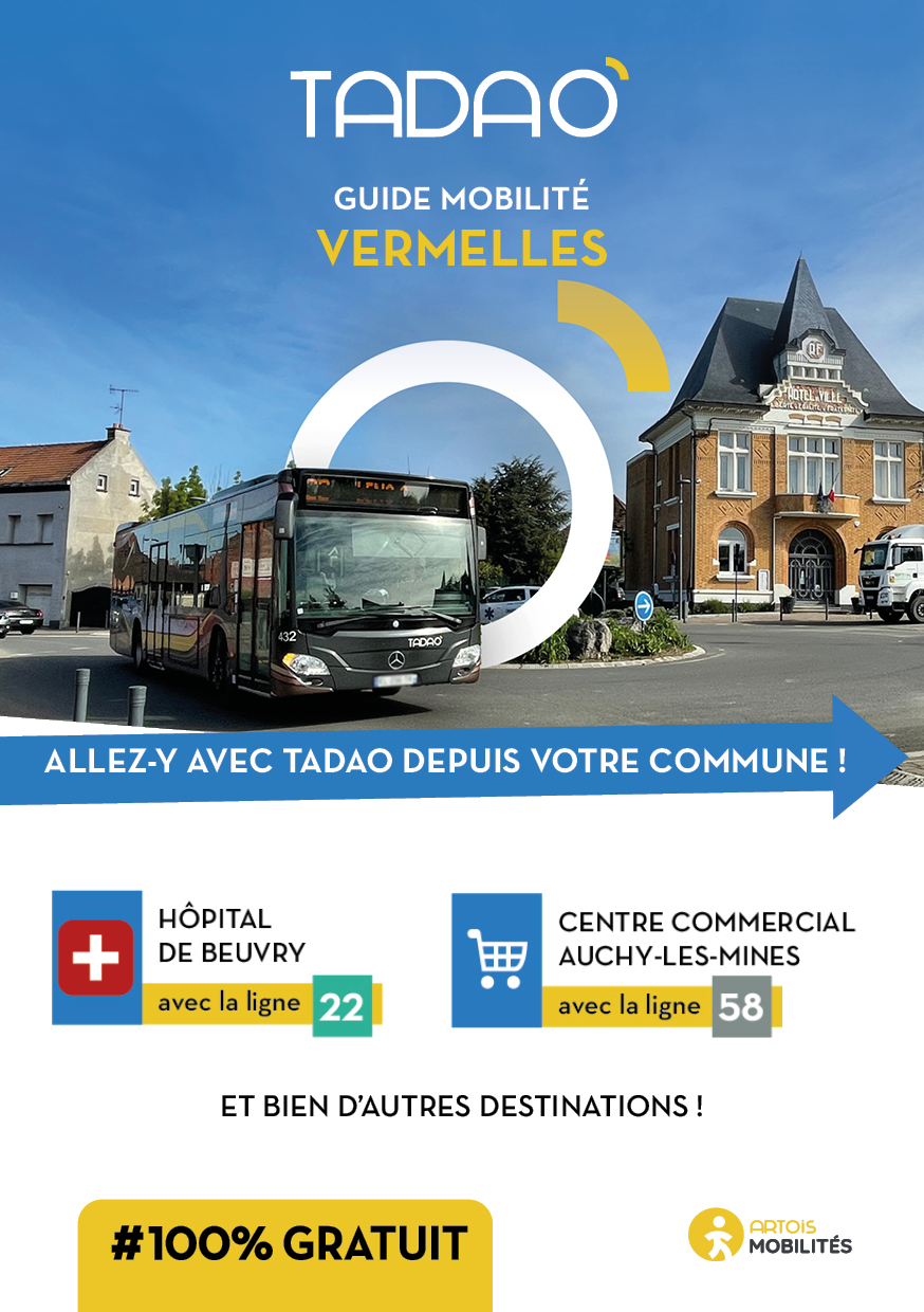 VERMELLES Les services TADAO sur la commune Télécharger le GUIDE de votre commune au format PDF Télécharger le GUIDE au format ZIP avec les JPEG Téléchargements Envoyer cette page par email : Votre demande a bien été prise en compte et sera traitée dès que possible Votre nom* Votre adresse email* Adresse du destinataire* Commentaire https://www.artois-mobilites.fr/vermelles/ Code de vérification* Envoyer *champs obligatoires